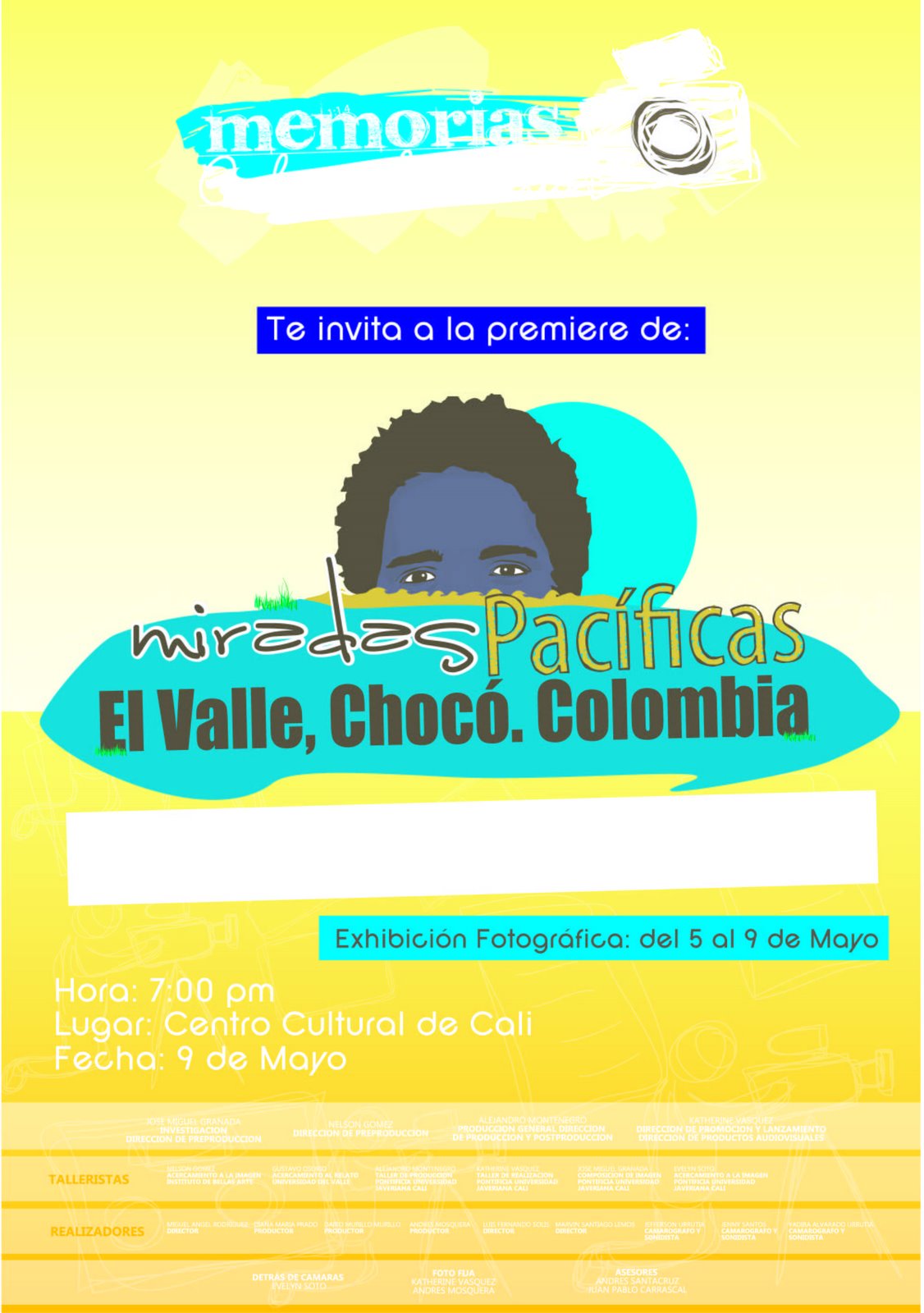 There we go again, and this time I am writing out to invite you to come and see the brilliant exposition “Memorias Colombianas” (Colombian Memories). There we will find great photographies taken in one of the poorest regions of our country: El Valle, Choco.